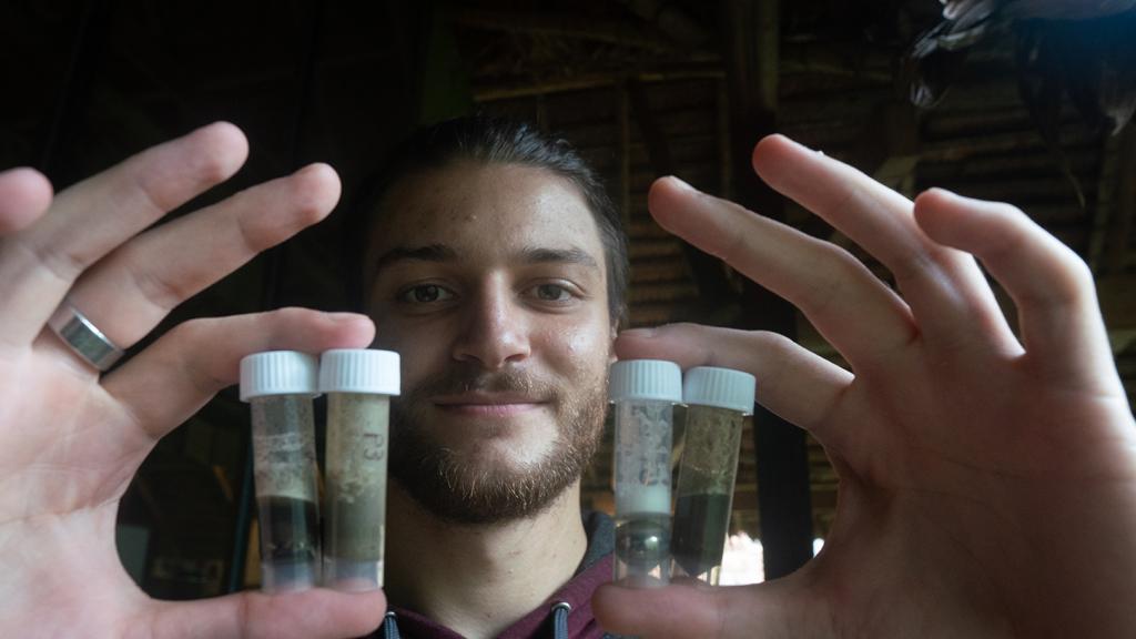 Photo: Alexander Kabrich with vials of environmental DNA during his experiential learning trip to the Sucasari region of the Peruvian Amazon.
